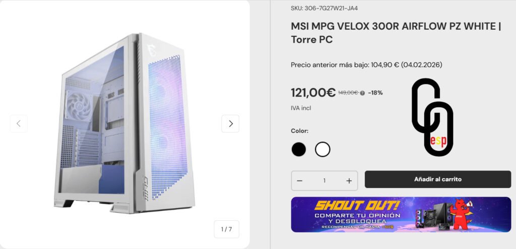 Por qué destaca: Es una de las joyas de la línea Project Zero (PZ) de MSI. Al igual que los modelos más caros, permite instalar placas base con conectores traseros, eliminando los cables de la vista. Su frontal de malla ultra-transpirable, junto a sus 4 ventiladores ARGB de serie, garantiza que tus componentes trabajen frescos incluso en pleno verano.